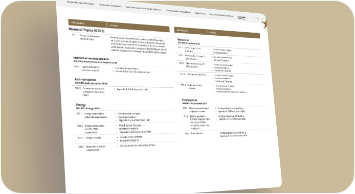 Responsible Capital Allocation Community Contributions Good Governance & Shareholder Alignment Diversity, Inclusion & Well-Being Climate Action Transparency & Guiding Principles Appendices 78 GRI Standard Location GRI Standard Location Material Topics (GRI 3) 3-1 Process to determine For the purpose of reporting in accordance with GRI standards, Emissions material topics we classify our material topics into levels that reflect the degree GRI 305: Emissions 2016 of associated risk and/or level of significance to Franco-Nevada, 305-1 Direct (Scope 1) GHG • Overall Carbon Footprint and therefore the amount of coverage in this ESG Report. We will emissions • Corporate Footprint continue to assess Franco-Nevada's material ESG topics annually. 305-2 Energy indirect (Scope 2) • Overall Carbon Footprint GHG emissions • Corporate Footprint Indirect economic impacts 305-3 Other indirect (Scope 3) • Overall Carbon Footprint GRI 203: Indirect Economic Impacts 2016 GHG emissions • Corporate Footprint 203-2 Significant indirect • Community Contributions • Investment Footprint economic impacts • Climate Action Commitments and Plans 305-4 GHG emissions intensity • Overall Carbon Footprint • Corporate Footprint Anti-corruption • Investment Footprint GRI 205: Anti-corruption 2016 305-5 Reduction of GHG • Overall Carbon Footprint emissions • Corporate Footprint 205-3 Confirmed incidents of • Appendix A: ESG Performance Table • Climate Action Commitments and Plans corruption and actions taken Employment Energy GRI 401: Employment 2016 GRI 302: Energy 2016 401-1 New employee hires and • Employee Benefits and Well-Being employee turnover • Appendix A: ESG Performance Table 302-1 Energy consumption • Overall Carbon Footprint within the organization • Corporate Footprint 401-2 Benefits provided to • Employee Benefits and Well-Being • Appendix A: ESG Performance Table full-time employees that • Appendix A: ESG Performance Table are not provided to 302-2 Energy consumption • Overall Carbon Footprint temporary or part-time outside of the • Investment Footprint employees organization • Appendix A: ESG Performance Table 401-3 Parental leave • Employee Benefits and Well-Being 302-3 Energy intensity • Overall Carbon Footprint • Appendix A: ESG Performance Table • Investment Footprint 302-4 Reduction of energy • Climate Action Commitments and Plans consumption