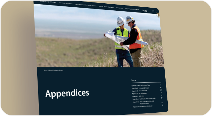 Responsible Capital Allocation Community Contributions Good Governance & Shareholder Alignment Diversity, Inclusion & Well-Being Climate Action Transparency & Guiding Principles Appendices 50 Miners at Marigold gold mine, Nevada Contents Appendix A: ESG Performance Table 51 Appendix B: Operators’ Emissions 53 Appendices Appendix C: TCFD Disclosure 57 Appendix D: SASB Disclosure 73 Appendix E: GRI Index 76 Appendix F: Sustainable Development Goals 80 Appendix G: KPMG: Independent Limited Assurance Report 82 Appendix H: Carbon Neutral Initiative 83