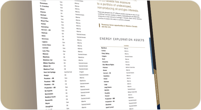 Location: AB / MB / SK, Canada & Nevada, U.S | Operator: Various Royalty: 0.1-18% and WI: 2-100% In addition to its producing assets, Franco-Nevada has exposure to a portfolio of undeveloped, non-producing oil and gas interests. These are grouped into 27 different assets covering an area of over 1,500 km 2 and are located in Alberta, Saskatchewan and Manitoba along with a small amount of acreage in Nevada. Much of the interests consist of mineral title which is currently unleased. E N E R G Y E X P L O R AT I O N A S S E T S Location Big Bend Alberta Carbon Alberta Cindy/Belloy Alberta Colgate Saskatchewan Devil Alberta Dixonville Alberta Elko Mineral Rights Nevada Flatrock British Columbia Granor Alberta Harvest – SK Saskatchewan Hotchkiss Alberta Killam Alberta Kimiwan Alberta Liege Alberta Long Coulee Alberta Melville Saskatchewan Paradise British Columbia Provost Alberta Prudential – MB Manitoba Prudential – SK Saskatchewan Steelman Saskatchewan Swift Current Saskatchewan Touchwood Alberta Turner Alberta W. Calling Lake Alberta Widewater Alberta O T H E R P R O D U C I N G E N E R G Y A S S E T S E N E R G Y E X P L O R AT I O N A S S E T S Location Alameda Oil Saskatchewan Alida Oil Saskatchewan Benson Oil Saskatchewan Carnduff Oil Saskatchewan Cessford Gas Alberta Claresholm Gas Alberta E. Crossfield Gas Alberta Edson Gas Alberta Elswick Oil Saskatchewan Enchant Gas Alberta Ferrybank Gas Alberta Ghost Pine Gas Alberta Hanlan Gas Alberta Harmattan Gas Alberta Harvest – AB Gas Alberta Huntoon Oil Saskatchewan Innes Oil Saskatchewan Inverness Oil Alberta Laglace Gas Alberta Lesser Slave Oil Alberta Lochend Gas Alberta Lone Pine Gas Alberta Macoun Oil Saskatchewan Manitoba Oil Manitoba Medicine Hat Gas Alberta Midale Royalties Oil Saskatchewan Midale WI Oil Saskatchewan Montreal Trust Oil Saskatchewan Neal Hot Springs Geothermal Oregon Oungre Oil Saskatchewan Pearmac – AB Gas Alberta Pearmac – MB Oil Manitoba Pearmac – SK Oil Saskatchewan Prudential – AB Gas Alberta Qu’Appelle Oil Saskatchewan Queensdale Oil Saskatchewan Rainbow South Oil Alberta Rocanville Oil Saskatchewan Royce Gas Alberta Stoughton Oil Saskatchewan Swalwell Gas Alberta Tidewater Oil Saskatchewan Viewfield Oil Saskatchewan Watts/Craig Oil Alberta Numerous future opportunities in Western Canada and the U.S. Franco-Nevada Corporation ★ 115 TSX / NYSE: FNV