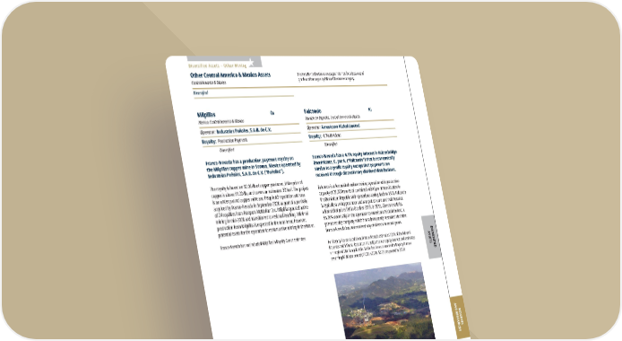 FRANCO-NEVADA CORPORATION 109 THE GOLD INVESTMENT THAT WORKS DIVERSIFIED ASSETS RESERVES AND RESOURCES ADDITIONAL INFORMATION Diversified Assets – Other Mining Other Central America & Mexico Assets Central America & Mexico Diversified Please refer to the tables on pages 128-136 for a breakout of grade and tonnages by Mineral Resource category. Franco-Nevada has a production payment royalty on the Milpillas copper mine in Sonora, Mexico operated by Industrias Peñoles, S.A.B. de C.V. (“Peñoles”). The royalty is based on $0.04/lb of copper produced, if the price of copper is above $1.20/lb, and covers an estimated 30 km 2 . The project is an underground copper mine and heap leach operation and was acquired by Franco-Nevada in September 2020 as part of a portfolio of 24 royalties from Freeport-McMoRan Inc. Milpillas paused active mining in mid-2020 and transitioned to residual leaching. Minimal production from Milpillas is expected in the near term; however, potential exists for the operation to restart active mining in the future. Franco-Nevada has not included Milpillas in Royalty Ounce estimates Milpillas Cu Mexico, Central America & Mexico Operator: Industrias Peñoles, S.A.B. de C.V. Royalty: Production Payment Diversified Franco-Nevada has a 4.1% equity interest in Falconbridge Dominicana, C. por A. (“Falcondo”) that is economically similar to a profit royalty except that payments are received through discretionary dividend distributions. Falcondo is a ferronickel surface mining operation with production capacity of 29,000 tonnes of contained nickel per annum located in the Dominican Republic with operations dating back to 1971. Falcondo is typically a swing producer and was put on care and maintenance when nickel prices fell in October 2013. In 2015, Glencore sold its 85.26% ownership in the operation to Americano Nickel Limited, a private equity company which has subsequently restarted the mine. Franco-Nevada has not received any dividends in recent years. For Royalty Ounce calculation, Franco-Nevada estimates 100% of the Mineral Reserves and Mineral Resources are subject to our equity interest and estimates a margin of 20% is applicable. Nickel has been converted to Royalty Ounces assuming $9.00 per pound ($7.00 in 2020, $7.25 per pound in 2019) Falcondo Ni Dominican Republic, Central America & Mexico Operator: Americano Nickel Limited Royalty: 4.1% Dividend Diversified Falcondo, Dominican Republic
