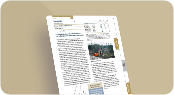 FRANCO-NEVADA CORPORATION 79 THE GOLD INVESTMENT THAT WORKS N Km O 75 Deer Lake Corner Brook Springdale Grand Falls Badger Stephenville Valentine Lake Property Buchans Millertown Duck Pond Mine Granite Canal Substation Teck Resources Duck Pond Mine Millertown Buchans Buchans Junction Valentine Lake Thrust Fault Marathon Deposit Leprechaun Deposit Victory Deposit Sprite Deposit Frank Zone N Km O 20 Valentine Lake Gold Camp Powerline Granite Canal Hydro Facility Marathon Gold Corporation Berry Zone N Km O 75 Deer Lake Corner Brook Springdale Grand Falls Badger Stephenville Valentine Lake Property Buchans Millertown Duck Pond Mine Granite Canal Substation Teck Resources Duck Pond Mine Millertown Buchans Buchans Junction Valentine Lake Thrust Fault Marathon Deposit Leprechaun Deposit Victory Deposit Sprite Deposit Frank Zone N Km O 20 Valentine Lake Gold Camp Powerline Granite Canal Hydro Facility Marathon Gold Corporation Berry Zone Valentine Lake Quebec Ontario Newfoundland Canada PRECIOUS METALS DIVERSIFIED ASSETS RESERVES AND RESOURCES ADDITIONAL INFORMATION 2021 2020 2019 Revenue to Franco-Nevada ($ million) $ – $ – $ – P&P Reserves (koz Au) 1 2,100 1900 – M&I Resource (koz Au) 1 3,138 3,092 3,090 Inferred Resource (koz Au) 1 1,639 958 960 P&P Royalty Ounces (000s) 2 32 29 – M&I Royalty Ounces (000s) 1,2 47 46 62 Inf Royalty Ounces (000s) 2 25 14 19 1 Please refer to the tables on pages 128-136 for a breakout of grade and tonnages by Mineral Resource category; all M&I categories are inclusive of Mineral Reserves 2 For Royalty Ounce calculation, Franco-Nevada estimates 100% of the Mineral Reserves and Mineral Resources are subject to our royalty interest and estimates a rate of 1.5% is applicable in anticipation that Marathon Gold exercises its right to repurchase 0.5% of the 2.0% NSR Valentine Lake Au Newfoundland, Canada Operator: Marathon Gold Corporation Royalty: NSR: 2% Precious Metals Franco-Nevada purchased a 2% NSR on the Valentine Lake Gold Camp in central Newfoundland in February 2019. The project is being advanced by Marathon Gold Corporation (“Marathon Gold”). When completed, the Valentine Gold project will be the largest gold mine in Atlantic Canada. The royalty is subject to a 0.5% buyback provision for $7 million until December 31, 2022. The Valentine Gold project comprises a series of mineralized deposits along a 20 km trend. In March 2021, Marathon Gold announced the results of a feasibility study outlining a mine plan based on the same two-pit and centralized mill strategy first presented in an April 2020 prefeasibility study. The feasibility study presented an updated Mineral Reserve and Mineral Resource estimate, refined mine and mill designs supported by additional geotechnical and metallurgical data, and updated capital and operating cost estimates. The feasibility study outlines a 13-year mine life, 22-month construction and commissioning schedule, with an average gold production profile of 173,000 ounces of gold per year between 2024 and 2033 from the processing of high-grade mill feed, and 56,000 ounces of gold per year between 2034 and 2036 from the processing of low-grade stockpiles. The project has estimated Proven and Probable Mineral Reserves of 2.05 million ounces of gold (47.06 million tonnes grading 1.36 g/t) and total Measured and Indicated Mineral Resources (inclusive of the Mineral Reserves) of 3.14 million ounces of gold (56.66 million tonnes grading 1.72 g/t). Additional Inferred Mineral Resources are 1.00 Moz (18.25 Mt at 1.70 g/t Au). In September 2020, Marathon Gold filed its Environmental Impact Statement (“EIS”) to the relevant provincial and federal agencies. In March 2022, Marathon Gold announced that the Newfoundland and Labrador Minister of Environment and Climate Change had completed its review of the EIS. Concurrently, Marathon Gold was advised that the project had received approval by the Cabinet of the Government of Newfoundland and Labrador, marking the completion of the provincial Environmental Assessment (“EA”) process, allowing Marathon Gold to commence site-specific permitting including the acquisition of the project Mining Lease while awaiting final release from the federal EA. Marathon Gold is currently contemplating construction in 2023. Marathon Gold continues to report positive exploration results from ongoing in-fill drilling of the Berry Deposit. The company completed 74,100 m of drilling at the Berry Deposit, Sprite Deposit and Victory Deposit in 2021, with encouraging results for each area. In 2022, the exploration program continues to focus on drilling at the Berry Deposit, Victory Deposit and Grassroots Discovery. Marathon Gold targeting construction in 2023 Continued exploration with focus on the Berry Zone, resource conversion and new discoveries along trend Valentine Lake, Newfoundland