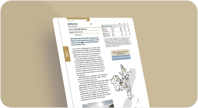 2022 ASSET HANDBOOK 58 FNV TSX NYSE Bald Mountain Mine North Block South Block Excluded from Royalty * Subject to possible reduction by third-party royalty Galaxy Poker Flats Bida Saga Yankee Targets Lux/Vantage Targets Top Sage Flats Belmont Horseshoe 4% NSR 4% NSR 4% NSR 4% NSR 4% NSR* 4% NSR* 4% NSR* 4% NSR* 4% NSR* 4% NSR* 4% NSR* 0.875 to 1.75% NSR 2.418% NSR Royale 1%-5% GR Redbird 5 1 LJ Ridge Banghart South Ridge Rat North Duke South Duke 2/3 1%-5% GR Winrock N Km 0 2 North Block South Block Bald Mountain Mine North Block South Block Excluded from Royalty * Subject to possible reduction by third-party royalty Galaxy Poker Flats Bida Saga Yankee Targets Lux/Vantage Targets Top Sage Flats Belmont Horseshoe 4% NSR 4% NSR 4% NSR 4% NSR 4% NSR* 4% NSR* 4% NSR* 4% NSR* 4% NSR* 4% NSR* 4% NSR* 0.875 to 1.75% NSR 2.418% NSR Royale 1%-5% GR Redbird 5 1 LJ Ridge Banghart South Ridge Rat North Duke South Duke 2/3 1%-5% GR Winrock N Km 0 2 North Block South Block Bald Mountain Pacific Ocean Oregon Idaho Utah Nevada California Arizona MEXICO United States PRECIOUS METALS 2021 2020 2019 Revenue to Franco-Nevada ($ million) $ 11.2 $ 11.2 $ 8.9 P&P Reserves (koz Au) 1 798 1,143 1,277 M&I Resource (koz Au) 1 4,390 4,735 5,139 Inferred Resource (koz Au) 1 669 695 808 P&P Royalty Ounces (000s) 2 16 22 25 M&I Royalty Ounces (000s) 1, 2 139 143 161 Inf Royalty Ounces (000s) 2 23 23 29 1 Please refer to the tables on pages 128-136 for a breakout of grade and tonnages by Mineral Resource category; all M&I categories are inclusive of Mineral Reserves 2 For Royalty Ounce calculation, Franco-Nevada estimates 95% of Mineral Reserves (93% in 2020, 92% in 2019) and 95% of Mineral Resources (exclusive of Mineral Reserves) (93% in 2020, 98% in 2019) are subject to our royalty interest and estimates an average rate of 2.10% is applicable for Mineral Reserves and 3.60% for Mineral Resources (exclusive of Mineral Reserves) Bald Mountain Au Nevada, United States Operator: Kinross Gold Corporation Royalty: NSR/GR: 0.875-5% Precious Metals The Bald Mountain mine lies within the Southern Ruby Mountains of northeastern Nevada along the southern extension of the prolific Carlin Trend, approximately 110 km southeast of Elko. Ore is sourced from multiple open pits over an estimated 600 km 2 property with processing at multiple conventional heap leaching facilities. Bald Mountain is the largest mine site by area in the U.S. It stretches 40 km north to south and 15 km east to west and is divided in three zones: North Zone, South Zone and JV Zone. Franco-Nevada’s Bald Mountain royalties cover a significant portion of the Bald Mountain property. Royalty rates range from 0.875%-5% NSR/GR. A detailed map of the royalties is shown in the schematic. At the end of 2015, Kinross Gold Corporation (“Kinross”) purchased from Barrick 100% of the North and South Zones while forming a 50/50 exploration joint venture partnership with Barrick on the JV Zone in between the North and South Zones. During 2018, Kinross acquired the remaining 50% portion of the JV area that it did not already own. Bald Mountain produced 204,890 ounces in 2021, a slight increase from the 191,282 ounces produced in 2020, mainly due to timing of ounces recovered from the heap leach pads. The large scale of the Bald Mountain land package offers significant exploration upside, with multiple known mineralized bodies. In 2021, approximately 18,500 meters of drilling was completed with 15 drill targets interpreted. The North Point, Duke, Zed-Williams, Wino and Top UG targets were advanced to the next phase of drill testing. 2022 exploration projects will concentrate on testing targets with significant near-surface potential (Zed-Williams, Wino, North Point, Dueces, South and West Yankee, and Duke), along with continuing exploration on the high-grade Top underground resource prospect. Large land package and significant exploration upside Potential to add significant mine life Bald Mountain, Nevada