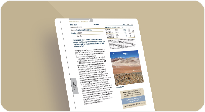 2022 ASSET HANDBOOK 108 FNV TSX NYSE Taca Taca Royalty Area 1.08% NSR N Arica Iquique Antofagasta La Serena Santiago Copiapo NuevaUnión (Relincho) CHILE ARGENTINA BOLIVIA PERU Vizcachitas San Jorge Taca Taca Km 0 5 Pit Royalty Area First Quantum 2020 Technical Report Ultimate Pit Design DIVERSIFIED ASSETS Taca Taca Cu, Au, Mo Argentina, South America Operator: First Quantum Minerals Ltd. Royalty: NSR: 1.08% Diversified Franco-Nevada has a 1.08% NSR royalty on all copper, gold and molybdenum produced from Taca Taca which was acquired through the acquisition of Lumina Royalty Corp. in December 2011. The property hosts a very large copper-gold-molybdenum porphyry system and is located in the Puna region of northwestern Argentina in Salta Province, 230 km west of the provincial capital of Salta. The royalty is subject to a buy-back provision. In November 2020, First Quantum filed an updated NI 43-101 technical report and declared a maiden Mineral Reserve of over 7.7 million tonnes of contained copper. First Quantum’s technical report considers an open-pit mine plan which contemplates processing throughput of up to 60 million tonnes per annum through a conventional flotation circuit with a mine life of approximately 32 years. The Measured and Indicated Mineral Resource is 2,203 million tonnes, grading 0.43% copper, and contains 9,451,000 tonnes of contained copper, 265,000 tonnes of molybdenum and 6,052,000 ounces of gold. The Proven and Probable Mineral Reserve has been estimated at 1,759 million tonnes, grading 0.44% copper, for 7,735,000 tonnes of contained copper, 214,000 tonnes of molybdenum and 5,087,000 ounces of gold. First Quantum is continuing with pre-development work and feasibility study activities for the project. The primary Environmental and Social Impact Assessment (“ESIA”) for the project, which covers the principal proposed project sites, was submitted in 2019 and assessment by the authorities continues. Separate ESIA’s for project support infrastructure were submitted to the relevant authorities during Q2 2021. First Quantum is seeking an improved fiscal environment before making a decision to proceed with the project, which is not expected before 2023/2024. Large porphyry deposit with reserve of over 7.7 million tonnes of contained copper and 5.1 million ounces of gold Potentially First Quantum’s next development project Feasibility study and permitting work underway Diversified Assets – Other Mining 2021 2020 2019 Revenue to Franco-Nevada ($ million) $ – $ – $ – P&P Reserves (Mlbs Cu) 1 17,052 17,052 – M&I Resource (Mlbs Cu) 1 20,835 20,835 21,150 Inferred Resource (Mlbs Cu) 1 4,863 4,863 7,550 P&P Royalty Ounces (000s) 2 359 368 – M&I Royalty Ounces (000s) 1, 2 437 448 476 Inf Royalty Ounces (000s) 2 100 102 165 1 Please refer to the tables on pages 128-136 for a breakout of grade and tonnages by Mineral Resource category; all M&I categories are inclusive of Mineral Reserves 2 For Royalty Ounce calculation, Franco-Nevada estimates 100% of the Mineral Reserves and Mineral Resources are subject to our royalty interest and estimates a rate of 0.918% is applicable for the copper Royalty Ounces (which factors in a NSR smelting charge of 15%). Copper has been converted to Royalty Ounces assuming $3.50 per pound ($350 per pound in 2020, $3.00 per pound in 2018) Taca Taca, Argentina