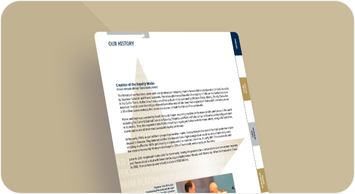 GOLD GOLD GOLD GOLD GOLD GOLD GOLD GOLD GOLD GOLD GOLD GOLD GOLD GOLD GOLD GOLD GOLD GOLD GOLD GOLD SILVER SILVER SILVER SILVER SILVER SILVER SILVER SILVER SILVER SILVER SILVER SILVER SILVER SILVER SILVER SILVER SILVER SILVER SILVER PLATINUM PLATINUM PLATINUM PLATINUM PLATINUM PLATINUM PLATINUM PLATINUM PLATINUM PLATINUM PLATINUM PLATINUM OIL NATURAL GAS NGLS OIL NATURAL GAS NGLS OIL NATURAL GAS NGLS OIL NATURAL GAS NGLS OIL NATURAL GAS NGLS OIL NATURAL IRON ORE IRON ORE IRON ORE IRON ORE IRON ORE IRON ORE IRON ORE IRON ORE IRON ORE IRON ORE IRON ORE IRON ORE GOLD GOLD GOLD GOLD GOLD GOLD GOLD GOLD GOLD GOLD GOLD GOLD GOLD GOLD GOLD GOLD GOLD GOLD GOLD GOLD SILVER SILVER SILVER SILVER SILVER SILVER SILVER SILVER SILVER SILVER SILVER SILVER SILVER SILVER SILVER SILVER SILVER SILVER SILVER PLATINUM PLATINUM PLATINUM PLATINUM PLATINUM PLATINUM PLATINUM PLATINUM PLATINUM PLATINUM PLATINUM PLATINUM IRON ORE IRON ORE IRON ORE IRON ORE IRON ORE IRON ORE IRON ORE IRON ORE IRON ORE IRON ORE IRON ORE IRON ORE GOLD GOLD GOLD GOLD GOLD GOLD GOLD GOLD GOLD GOLD GOLD GOLD GOLD GOLD GOLD GOLD GOLD GOLD GOLD GOLD SILVER SILVER SILVER SILVER SILVER SILVER SILVER SILVER SILVER SILVER SILVER SILVER SILVER SILVER SILVER SILVER SILVER SILVER SILVER PLATINUM PLATINUM PLATINUM PLATINUM PLATINUM PLATINUM PLATINUM PLATINUM PLATINUM PLATINUM PLATINUM PLATINUM GOLD GOLD GOLD GOLD GOLD GOLD GOLD GOLD GOLD GOLD GOLD GOLD GOLD GOLD GOLD GOLD GOLD GOLD GOLD GOLD SILVER SILVER SILVER SILVER SILVER SILVER SILVER SILVER SILVER SILVER SILVER SILVER SILVER SILVER SILVER SILVER SILVER SILVER SILVER PLATINUM PLATINUM PLATINUM PLATINUM PLATINUM PLATINUM PLATINUM PLATINUM PLATINUM PLATINUM PLATINUM PLATINUM OIL NATURAL GAS NGLS OIL NATURAL GAS NGLS OIL NATURAL GAS NGLS OIL NATURAL GAS NGLS OIL NATURAL GAS NGLS OIL NATURAL IRON ORE IRON ORE IRON ORE IRON ORE IRON ORE IRON ORE IRON ORE IRON ORE IRON ORE IRON ORE IRON ORE IRON ORE GOLD GOLD GOLD GOLD GOLD GOLD GOLD GOLD GOLD GOLD GOLD GOLD GOLD GOLD GOLD GOLD GOLD GOLD GOLD GOLD SILVER SILVER SILVER SILVER SILVER SILVER SILVER SILVER SILVER SILVER SILVER SILVER SILVER SILVER SILVER SILVER SILVER SILVER SILVER PLATINUM PLATINUM PLATINUM PLATINUM PLATINUM PLATINUM PLATINUM PLATINUM PLATINUM PLATINUM PLATINUM PLATINUM IRON ORE IRON ORE IRON ORE IRON ORE IRON ORE IRON ORE IRON ORE IRON ORE IRON ORE IRON ORE IRON ORE IRON ORE GOLD GOLD GOLD GOLD GOLD GOLD GOLD GOLD GOLD GOLD GOLD GOLD GOLD GOLD GOLD GOLD GOLD GOLD GOLD GOLD FRANCO-NEVADA CORPORATION 7 THE GOLD INVESTMENT THAT WORKS PRECIOUS METALS DIVERSIFIED ASSETS OVERVIEW RESERVES AND RESOURCES ADDITIONAL INFORMATION OUR HISTORY Creation of the Royalty Model Franco-Nevada Mining Corporation Limited The history of our business starts with our predecessor company, Franco-Nevada Mining Corporation Limited, founded by Seymour Schulich and Pierre Lassonde. Pierre bought Franco-Nevada’s first royalty in 1986 on the Goldstrike mine in the Carlin Trend. At the time it was a small heap-leach mine operated by Western States Mining. Shortly thereafter, American Barrick (now Barrick) purchased Goldstrike and did the deep level exploration that would ultimately reveal a 50 million ounce orebody that drove the success of both Barrick and Franco-Nevada. Pierre and Seymour, assisted by David Harquail, began acquiring royalties in the more prolific gold camps in the world including the Carlin & Getchell trends in Nevada, Timmins and Kirkland Lake camps in Ontario and the Kalgoorlie belt in Australia. They also expanded into PGMs including a royalty on Stillwater in Montana which, along with Goldstrike, stands out as one of their most successful royalty purchases. In the early 1990s as part of their prospect generation model, Franco-Nevada discovered the high-grade Ken Snyder deposit in Nevada. They determined that the deposit had a high enough silver credit to carry all operating costs, creating an effective 100% gold royalty and proceeded to construct the mine. In early 2001, Franco-Nevada sold the mine to Normandy Mining in exchange for 20% of Normandy and a royalty on the mine. Later in 2001 AngloGold made a bid for Normandy. Seeing the potential for a better alternative transaction, Seymour and Pierre struck a deal with Newmont to acquire both Franco-Nevada and Normandy. When the transaction closed in 2002, Franco-Nevada was valued at close to US$3 billion. Seymour Schulich (right) introducing Pierre Lassonde upon Pierre’s induction into the Canadian Mining Hall of Fame in 2013