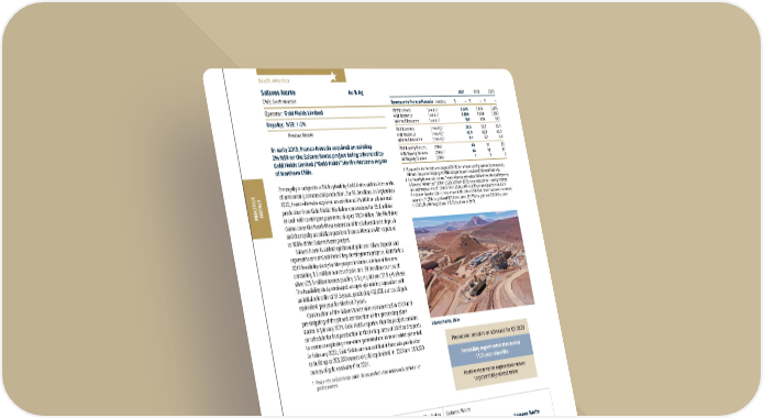 2022 ASSET HANDBOOK 44 FNV TSX NYSE In early 2019, Franco-Nevada acquired an existing 2% NSR on the Salares Norte project being advanced by Gold Fields Limited (“Gold Fields”) in the Atacama region of Northern Chile. The royalty is subject to a 1% buyback by Gold Fields within 24 months of announcing commercial production, for $6.0 million. In September 2020, Franco-Nevada acquired an additional 2% NSR on all mineral production from Gold Fields’ Rio Baker concessions for $5.0 million in cash with contingent payments of up to $8.0 million. The Rio Baker claims cover the North-West extension of the Salares Norte deposit and the royalty acquisition provided Franco-Nevada with exposure to 100% of the Salares Norte project. Salares Norte is a blind epithermal gold and silver deposit and represents one of Gold Fields’ key development projects. Gold Fields’ 2019 feasibility study for the project included a Mineral Reserve containing 3.5 million ounces of gold and 39.3 million ounces of silver (21.1 million tonnes grading 5.1 g/t gold and 57.9 g/t silver). The feasibility study envisaged an open-pit mining operation with an initial mine life of 11.5 years, producing 450,000 ounces of gold equivalent 1 per year for the first 7 years. Construction of the Salares Norte mine commenced in 2020 and pre-stripping of the pit and construction of the processing plant started in January 2021. Gold Fields reported that the project remains on schedule for first production in the first quarter of 2023 and expects to continue exploring near-mine potential and to test district potential. In February 2022, Gold Fields announced that it forecasts production to build up to 203,000 ounces of gold equivalent 1 in 2023 and 550,000 ounces of gold equivalent 1 in 2024. 1 Please refer to Gold Fields’ public disclosures for further details on its definition of gold equivalent. 2021 2020 2019 Revenue to Franco-Nevada ($ million) $ – $ – $ – P&P Reserves (koz Au) 2 3,476 3,476 3,476 M&I Resource (koz Au) 2 3,804 3,804 3,800 Inferred Resource (koz Au) 2 109 109 110 P&P Reserves (moz Ag) 2 39.3 39.3 39.3 M&I Resource (moz Ag) 2 42.9 42.9 42.9 Inferred Resource (moz Ag) 2 0.7 0.7 0.8 P&P Royalty Ounces (000s) 3 40 81 80 M&I Royalty Ounces (000s) 2, 3 44 88 87 Inf Royalty Ounces (000s) 3 1 2 2 2 Please refer to the tables on pages 128-136 for a breakout of grade and tonnages by Mineral Resource category; all M&I categories are inclusive of Mineral Reserves 3 For Royalty Ounce calculation, Franco-Nevada estimates 100% of the Mineral Reserves & Mineral Resources (100% in 2020, 100% in 2019) are subject to our royalty interest and estimates a rate of 1.0% (2.0% in 2020, 2.0% in 2019) in anticipation that Gold Fields exercises its right to repurchase 1.0% of the 2.0% NSR. Silver has been converted assuming $1,800/oz gold and $23.00/oz silver ($1,750/oz gold and $25.00/oz silver in 2020, $1,400/oz gold and $18.00/oz silver in 2019) Salares Norte Au & Ag Chile, South America Operator: Gold Fields Limited Royalty: NSR: 1-2% Precious Metals Production remains on schedule for Q1 2023 Feasibility report estimates initial 11.5-year mine life Positive near-mine exploration serves to potentially extend mine Brecha Principal N Salares Norte Royalty Area Agua Amarga Salares Norte Rio Baker 0.5 Kilometre 0 1 High-grade gold sub-domains 2017 EIA pit outline Main low-grade domains Antofagasta La Serena Santiago Copiapo Relincho CHILE ARGENTINA BOLIVIA PERU Vizcachitas San Jorge Taca Taca Salares Norte South America PRECIOUS METALS Salares Norte, Chile