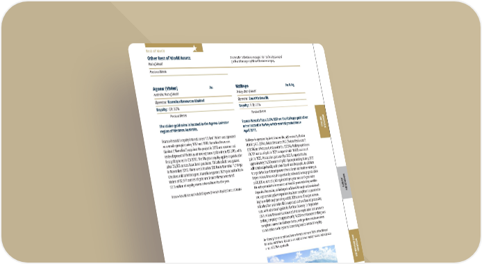FRANCO-NEVADA CORPORATION 93 THE GOLD INVESTMENT THAT WORKS PRECIOUS METALS DIVERSIFIED ASSETS RESERVES AND RESOURCES ADDITIONAL INFORMATION Rest of World Other Rest of World Assets Rest of World Precious Metals Please refer to the tables on pages 128-136 for a breakout of grade and tonnages by Mineral Resource category. The Vivien gold mine is located in the Agnew-Leinster region of Western Australia. Franco-Nevada’s royalty interest covers 1.5 km 2 . Vivien was operated as a small open pit during 1997 and 1998. Ramelius Resources Limited (“Ramelius”) acquired the project in 2013 and commenced redevelopment of Vivien as an underground gold mine in Q2 2015, with first gold poured in Q1 2016. The 3% gross royalty applies to production after 25,000 ounces have been produced. This threshold was passed in November 2016. Vivien ore is trucked 300 km to Ramelius’ 1.7 Mtpa Checkers mill at Mt Magnet. Ramelius reported 2021 production from Vivien of 32,971 ounces of gold and Franco-Nevada received $2.1 million of royalty revenue from Vivien for the year. Franco-Nevada has not included Agnew (Vivien) in Royalty Ounce estimates Agnew (Vivien) Au Australia, Rest of World Operator: Ramelius Resources Limited Royalty: GR: 3.0% Precious Metals Franco-Nevada has a 2.5% NSR on the Kiziltepe gold-silver mine located in Turkey which started production in April 2017. Kiziltepe is operated by Zenit Madencilik, a JV owned by Özaltin Holding A.S. (53%), Ariana Resources PLC (“Ariana Resources”) (23.5%) and Proccea Construction Co. (23.5%). Kiziltepe produced 20,737 ounces of gold in 2021 compared with 18,645 ounces of gold in 2020. Production guidance for 2022 is expected to be approximately 25,000 ounces of gold. Open-pit mining during 2022 will continue primarily at the Arzu North and Derya pits, in addition to a push-back and development of Arzu South and further mining at Kepez. Ariana Resources has previously estimated average production of 20,000 ounces of gold equivalent per year over an 8-year mine life with potential to increase to at least 10 years including satellite deposits. Processing at Kiziltepe is achieved through carbon-in-leach and a processing plant expansion has been completed to provide for higher mill throughput of up to 500,000 tonnes of ore per annum. A further four-year mine life is expected at the enhanced processing rate, with additional upside for further discovery. In September 2021, Ariana Resources announced that an exploration and resource drilling campaign of approximately 14,000 m of diamond drilling was completed across the Kiziltepe Sector, with positive results received across various vein systems covered by Franco-Nevada’s royalty. For Royalty Ounce calculation, Franco-Nevada estimates 100% of the Mineral Reserves and Mineral Resources are subject to our royalty interest and estimates a rate of 2.5% is applicable Kiziltepe Au & Ag Turkey, Rest of World Operator: Zenit Madencilik Royalty: NSR: 2.5% Precious Metals Kiziltepe, Turkey
