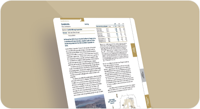 FRANCO-NEVADA CORPORATION 39 THE GOLD INVESTMENT THAT WORKS N Kilometres 0 2.5 Candelaria Gold and Silver Stream Candelaria Mining Property Area of Interest Ojos del Salado Mining Property Tierra Amarilla Santos Mine Copiapo Candelaria North (U/G) Alcaparrosa Mine Candelaria Pit Candelaria South (U/G) La Espanola PRECIOUS METALS In November 2014, Franco-Nevada (Barbados) Corporation, a subsidiary of Franco-Nevada, acquired a gold and silver stream on production from the Candelaria operation in Chile. Lundin Mining Corporation (“Lundin”) is the operator of the project and owns 80% of the asset with the balance owned by Sumitomo Corporation and its affiliates. Franco-Nevada provided an up-front deposit of $655 million to acquire the gold and silver stream from what is primarily a copper mine. The funds were used to finance a portion of the cost paid by Lundin to acquire the asset from Freeport-McMoRan Inc. Candelaria is an established mining operation and the transaction was the first material instance of a royalty/streaming company partnering with an operating company to purchase a producing asset. The stream covers the current property position of approximately 150 km 2 . An additional defined area of interest effectively doubles the property position. Should Lundin acquire properties located within the area of interest, Franco-Nevada has the option to purchase a gold and silver stream which will apply to the additional ore from such properties. The stream covers 68% of the payable gold and silver from 100% of the mine which reduces to 40% after 720,000 ounces of gold and 12 million ounces of silver have been delivered to Franco-Nevada, which are currently expected to occur in late 2026 and late 2027, respectively. Cumulatively, 427,690 ounces of gold and 6.8 million ounces of silver have been delivered since acquisition until December 31, 2021. Franco-Nevada pays an ongoing price equal to the lesser of $420.40 per ounce of gold and $4.20 per ounce of silver or the then prevailing spot price for gold and silver 2021 2020 2019 Revenue to Franco-Nevada ($ million) $ 116.5 $ 106.8 $ 103.1 P&P Reserves (koz Au) 1 2,700 2,800 2,700 M&I Resource (koz Au) 1 5,600 5,600 4,900 Inferred Resource (koz Au) 1 500 300 300 P&P Reserves (moz Ag) 1 39.0 39.0 38.0 M&I Resource (moz Ag) 1 83.0 78.0 66.0 Inferred Resource (moz Ag) 1 7.0 4.0 4.0 P&P Royalty Ounces (000s) 2 851 920 840 M&I Royalty Ounces (000s) 1, 2 1,586 1,629 1,338 Inf Royalty Ounces (000s) 2 125 75 68 1 Please refer to the tables on pages 128-136 for a breakout of grade and tonnages by Mineral Resource category; all M&I categories are inclusive of Mineral Reserves 2 For Royalty Ounce calculation, Franco-Nevada estimates P&P Royalty Ounces include payable metal of the balance of the 720,000 ounces of gold and 12 million ounces of silver remaining and the balance of P&P Reserves subject to the lower stream percentage. For M&I Royalty Ounces, Franco-Nevada has assumed the P&P Royalty Ounces with the balance of M&I Resources subject to the lower stream percentage. For Inf Royalty Ounces, Franco-Nevada assumes Inferred Mineral Resources are subject to the lower stream percentage. Silver is converted to Royalty Ounces assuming $1,800/oz gold and $23.00/oz silver ($1,750/oz gold and $25.00/oz silver in 2020, $1,400/oz gold and $18.00/oz silver in 2019). The stream interest has been factored by 77% to reflect $1,800 per ounce gold and $420.40 per ounce ongoing payments (76% in 2020, 71% in 2019) for each ounce delivered under the stream. This price escalates by 1% per annum in October of each year. The Candelaria mine was discovered in 1987 and the open pit has been in operation since 1993. The operation also includes the Candelaria North and South, Santos and Alcaparrosa underground mines. Lundin has made a significant investment in exploration at Candelaria. With the exploration success, Lundin has extended the go forward mine life from 2028, when it acquired Candelaria, to 2044. Lundin has successfully added to the Mineral Reserves and Mineral Resources at the four underground mines and has discovered the La Española open-pit deposit which is located partly on the stream concession and partly on ground covered by Franco-Nevada’s area of interest. Franco-Nevada sold 65,034 GEOs from the mine in 2021, compared with 59,655 GEOs in 2020. In 2022, Franco-Nevada expects sales from its Candelaria stream to be between 60,000 and 70,000 GEOs. DIVERSIFIED ASSETS RESERVES AND RESOURCES ADDITIONAL INFORMATION Candelaria Au & Ag Chile, South America Operator: Lundin Mining Corporation Stream: Gold and Silver Stream Precious Metals South America Updated plan extends life of mine to 2040 Successfully increased reserves and resources at four underground mines; demonstrating continued strong exploration potential Pacific Ocean ARGENTINA BOLIVIA PERU BRAZIL CHILE Candelaria Millmerran Red October Henty Mt Keith Duketon Yandal (Bronzewing/Julius) King Vol Bowen Basin South Kalgoorlie (Mt Martin) Flying Fox Australia Subika (Ahafo) Tasiast Sabodala Edikan MWS Perama Hill Kiziltepe Karma Sissingue Pandora Franco-Nevada Australia Office CentroGold (Gurupi) Cerro Moro San Jorge Antamina Salares Norte/ Rio Baker Antapaccay Candelaria Calcatreu Agate Creek White Dam Condestable Séguéla Edna May Higginsville (Lake Cowan) Aphrodite Matilda (Wiluna) Agnew (Vivien) South Kalgoorlie (New Celebration/ Mt Marion Lithium) Cue Gold (Day Dawn) Agi Dagi ̆ ̆ Producing Advanced Producing (Energy) Cascabel (Alpala) Posse (Mara Rosa) Producing Advanced Lundin Mining Corporation Candelaria, Chile