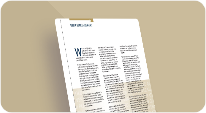 GOLD GOLD GOLD GOLD GOLD GOLD GOLD GOLD GOLD GOLD GOLD GOLD GOLD GOLD GOLD GOLD GOLD GOLD GOLD GOLD SILVER SILVER SILVER SILVER SILVER SILVER SILVER SILVER SILVER SILVER SILVER SILVER SILVER SILVER SILVER SILVER SILVER SILVER SILVER PLATINUM PLATINUM PLATINUM PLATINUM PLATINUM PLATINUM PLATINUM PLATINUM PLATINUM PLATINUM PLATINUM PLATINUM OIL NATURAL GAS NGLS OIL NATURAL GAS NGLS OIL NATURAL GAS NGLS OIL NATURAL GAS NGLS OIL NATURAL GAS NGLS OIL NATURAL IRON ORE IRON ORE IRON ORE IRON ORE IRON ORE IRON ORE IRON ORE IRON ORE IRON ORE IRON ORE IRON ORE IRON ORE GOLD GOLD GOLD GOLD GOLD GOLD GOLD GOLD GOLD GOLD GOLD GOLD GOLD GOLD GOLD GOLD GOLD GOLD GOLD GOLD SILVER SILVER SILVER SILVER SILVER SILVER SILVER SILVER SILVER SILVER SILVER SILVER SILVER SILVER SILVER SILVER SILVER SILVER SILVER PLATINUM PLATINUM PLATINUM PLATINUM PLATINUM PLATINUM PLATINUM PLATINUM PLATINUM PLATINUM PLATINUM PLATINUM IRON ORE IRON ORE IRON ORE IRON ORE IRON ORE IRON ORE IRON ORE IRON ORE IRON ORE IRON ORE IRON ORE IRON ORE GOLD GOLD GOLD GOLD GOLD GOLD GOLD GOLD GOLD GOLD GOLD GOLD GOLD GOLD GOLD GOLD GOLD GOLD GOLD GOLD SILVER SILVER SILVER SILVER SILVER SILVER SILVER SILVER SILVER SILVER SILVER SILVER SILVER SILVER SILVER SILVER SILVER SILVER SILVER PLATINUM PLATINUM PLATINUM PLATINUM PLATINUM PLATINUM PLATINUM PLATINUM PLATINUM PLATINUM PLATINUM PLATINUM GOLD GOLD GOLD GOLD GOLD GOLD GOLD GOLD GOLD GOLD GOLD GOLD GOLD GOLD GOLD GOLD GOLD GOLD GOLD GOLD SILVER SILVER SILVER SILVER SILVER SILVER SILVER SILVER SILVER SILVER SILVER SILVER SILVER SILVER SILVER SILVER SILVER SILVER SILVER PLATINUM PLATINUM PLATINUM PLATINUM PLATINUM PLATINUM PLATINUM PLATINUM PLATINUM PLATINUM PLATINUM PLATINUM OIL NATURAL GAS NGLS OIL NATURAL GAS NGLS OIL NATURAL GAS NGLS OIL NATURAL GAS NGLS OIL NATURAL GAS NGLS OIL NATURAL IRON ORE IRON ORE IRON ORE IRON ORE IRON ORE IRON ORE IRON ORE IRON ORE IRON ORE IRON ORE IRON ORE IRON ORE GOLD GOLD GOLD GOLD GOLD GOLD GOLD GOLD GOLD GOLD GOLD GOLD GOLD GOLD GOLD GOLD GOLD GOLD GOLD GOLD SILVER SILVER SILVER SILVER SILVER SILVER SILVER SILVER SILVER SILVER SILVER SILVER SILVER SILVER SILVER SILVER SILVER SILVER SILVER PLATINUM PLATINUM PLATINUM PLATINUM PLATINUM PLATINUM PLATINUM PLATINUM PLATINUM PLATINUM PLATINUM PLATINUM IRON ORE IRON ORE IRON ORE IRON ORE IRON ORE IRON ORE IRON ORE IRON ORE IRON ORE IRON ORE IRON ORE IRON ORE GOLD GOLD GOLD GOLD GOLD GOLD GOLD GOLD GOLD GOLD GOLD GOLD GOLD GOLD GOLD GOLD GOLD GOLD GOLD GOLD 2022 ASSET HANDBOOK 4 FNV TSX NYSE W e are delighted to publish our 2022 Asset Handbook and trust it will assist you to better understand our business and portfolio of assets. Franco-Nevada is the leading gold-focused royalty and streaming company with the largest and most diversified portfolio of cash flow producing assets. Our top line business model provides investors with gold price optionality while limiting exposure to cost inflation. Our high margins and exposure to exploration success have allowed us to outperform in both bull and bear markets. Our tag-line is “Franco-Nevada is the gold investment that works” and we are committed to ensuring it does work, for our shareholders, our operating partners and our communities. Combining a lower-risk gold investment with a strong balance sheet, progressive dividends and exposure to exploration optionality is the right mix to appeal to investors seeking to hedge market instability. Over the 14 years since our initial public offering, our shareholders have realized a share price appreciation of over 860% and a compounded annual growth rate of greater than 18%. Our objective is to sustain our dividend in almost any gold price environment and for it to be progressive. We have increased dividends for the fourteenth consecutive year and cumulative dividends now exceed US$1.73 billion. At year-end, our market capitalization exceeded US$26 billion, ranking Franco-Nevada among the largest gold companies in the world. We work to build long-term alignment with our operating partners, knowing we are only successful if they are. This win-win approach and the natural flexibility of royalties and streams has proven to be an effective financing tool for the cyclical resource sector. Our approach is to provide low-cost financing to the industry, to act as stable and supportive partners through the cycle and to share in the upside of a property. Our shareholders rely on us to allocate capital to responsible mining operations. As a result, attention to ESG is a core part of our transaction due diligence and we encourage our operators to adopt responsible operating principles as established by the World Gold Council or otherwise. Our goal is to achieve at least 40% diverse representation between the Board and senior management as a group by 2025 and we actively promote diversity and inclusion in our workforce. Our work with operators to develop and fund programs to benefit communities continues to expand. We have a unique approach to the royalty and streaming business that is born from experiencing many industry cycles. We avoid long-term debt to ensure strong capital availability at all times. Our Board and management have some of the best technical skills in the industry as evidenced by their success in asset selection. We are significant owners of the Company which is essential to our “thinking like owners”, keeping G&A low and treating shareholder funds as our own. Our investment objective is to increase our net asset value and cash flow per share, not just to make the Company larger. Our focus is growing our gold expo - sure. This includes financing gold mines and acquiring gold royalties, but increasingly through acquiring by-product precious metal streams from base metal mines. When good opportunities present themselves, we also invest in other resources outside of precious metals. This strategy adds to our cash flow growth, asset diversity and exposure to resource sector optionality. We don’t control when good assets