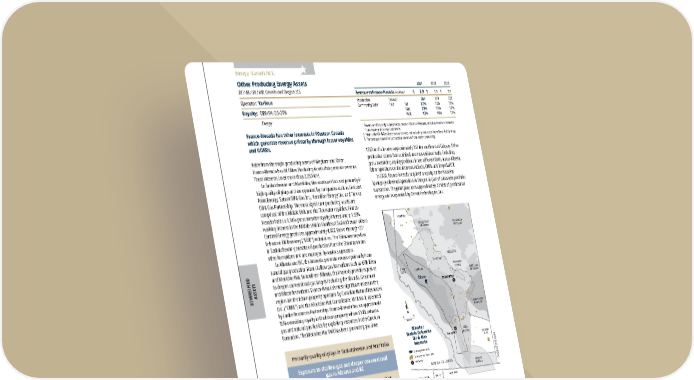 2022 ASSET HANDBOOK 124 FNV TSX NYSE Energy–Canada/U.S. Franco-Nevada has other interests in Western Canada which generate revenue primarily through lessor royalties and GORRs. Aside from the major producing assets of Weyburn and Orion, Franco-Nevada has 44 Other Producing Assets that generate revenue. These interests cover more than 2,250 km 2 . In Saskatchewan and Manitoba, the assets are focused primarily in high quality oil plays and are operated by companies such as Crescent Point Energy, Saturn Oil & Gas Inc., Vermilion Energy Inc. and Tundra Oil & Gas Partnership. The most significant producing assets are comprised of the Midale Unit and the Tidewater royalties. Franco- Nevada holds a 1.14% gross override royalty interest and a 1.59% working interest in the Midale Unit in Southeast Saskatchewan where Cardinal Energy produces approximately 4,000 Boe/d through CO 2 Enhanced Oil Recovery (“EOR”) techniques. The Tidewater royalties in Saskatchewan generate oil production from the Shaunavon and other formations and are managed by various operators. In Alberta and BC, the interests generate revenue primarily from natural gas production from shallow gas formations such as Milk River and Medicine Hat. In northern Alberta, the interests provide exposure to deeper conventional gas targets including the Shunda, Grosmont and Elkton formations. Franco-Nevada’s most significant assets in the region are the Edson property operated by Canadian Natural Resources Ltd. (“CNRL”) and the Medicine Hat Consolidated Unit No.1, operated by Canlin Resources Partnership. Franco-Nevada has an approximate 15% overriding royalty in the Edson property where CNRL extracts gas and natural gas liquids by exploiting resources in the Cardium Formation. The Medicine Hat Unit has been producing gas since 1963 and is located approximately 257 km southeast of Calgary. Other production comes from unitized and non-unitized wells, including gross overriding royalty positions in ten different Units across Alberta. Other operators on the interests include, CNRL and Imperial Oil. In 2020, Franco-Nevada acquired a royalty on the Neal Hot Springs geothermal operation in Oregon as part of a broader portfolio transaction. The plant produces approximately 22 MW of geothermal energy and is operated by Ormat Technologies, Inc. Primarily quality oil plays in Saskatchewan and Manitoba Exposure to shallow gas and deeper conventional gas in Alberta and BC Interest in the Neal Hot Springs geothermal operation DIVERSIFIED ASSETS N Kilometres 0 80 BRITISH COLUMBIA MONTANA IDAHO WASHINGTON Montney Deep Basin Edson Cardium Duvernay Alberta Bakken Lloydminster Heavy Oil Shallow Gas CBM (HSCN) Redwater Viking CALGARY Peace River Oil Sands Athabasca Oil Sands Cold Lake Oil Sands Alberta/ British Columbia Oil & Gas Interests ALBERTA EDMONTON SASKATCHEWAN Company Core Land Company Non Core Land Major City MANITOBA SASKATCHEWAN NORTH DAKOTA MONTANA Sanish Oil Torquay Oil SE Saskatchewan Lower Bakken & Mississippian Oil Williston Basin Bakken Dodsland Viking Shallow Gas Spearfish Oil REGINA Lloydminster Heavy Oil Shaunavon Oil N Kilometres 0 80 Saskatchewan/Manitoba Oil & Gas Interests Weyburn/ Midale ALBERTA Company Core Land Company Non Core Land Major City Other Producing Energy Assets BC / AB / SK / MB, Canada and Oregon, U.S. Operator: Various Royalty : ORR/FH: 0.5-20% Energy 2021 2020 2019 Revenue to Franco-Nevada ($ million) 1 $ 8.9 $ 5.1 $ 7.7 Production (Mboe) 2 257 319 323 Commodity Split (%) 3 Oil 67% 70% 79% Gas 20% 16% 10% NGL 13% 14% 11% 1 Revenue refers only to payments made to Franco-Nevada; includes revenue received from lease and bonus payments 2 Net to the Oil & Gas Interests and does not include production from Neal Hot Springs 3 Percentage based on production revenue from each commodity