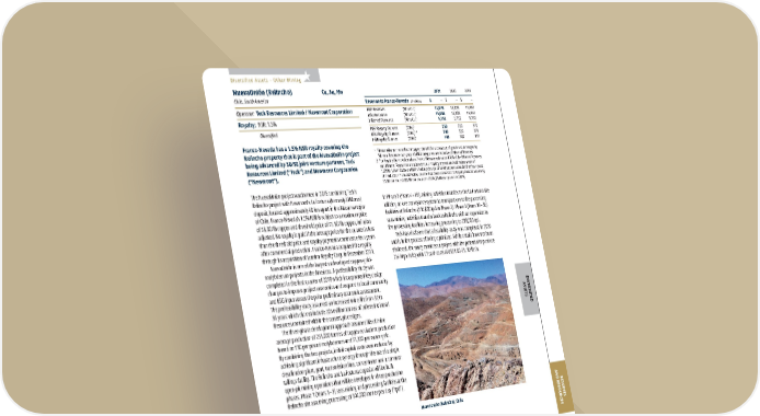 FRANCO-NEVADA CORPORATION 107 THE GOLD INVESTMENT THAT WORKS Diversified Assets – Other Mining DIVERSIFIED ASSETS RESERVES AND RESOURCES ADDITIONAL INFORMATION 2021 2020 2019 Revenue to Franco-Nevada ($ million) $ – $ – $ – P&P Reserves (Mlbs Cu) 1 12,078 12,078 11,862 M&I Resource (Mlbs Cu) 1 16,068 16,068 15,852 Inferred Resource (Mlbs Cu) 1 5,752 5,752 5,752 P&P Royalty Ounces (000s) 2 250 258 270 M&I Royalty Ounces (000s) 1, 2 349 359 379 Inf Royalty Ounces (000s) 2 143 147 157 1 Please refer to the tables on pages 128-136 for a breakout of grade and tonnages by Mineral Resource category; all M&I categories are inclusive of Mineral Reserves 2 For Royalty Ounce calculation, Franco-Nevada estimates 100% of the Mineral Reserves and Mineral Resources are subject to our royalty interest and estimates a rate of 1.275% (which factors a NSR smelting charge of 15%) and excludes the first four years of production from estimates. Copper has been converted to Royalty Ounces assuming $3.50 per pound ($3.50 per pound in 2020, $3.00 per pound in 2019) NuevaUnión (Relincho) Cu, Au, Mo Chile, South America Operator: Teck Resources Limited / Newmont Corporation Royalty: NSR: 1.5% Diversified Franco-Nevada has a 1.5% NSR royalty covering the Relincho property that is part of the NuevaUnión project being advanced by 50/50 joint venture partners, Teck Resources Limited (“Teck”) and Newmont Corporation (“Newmont”). The NuevaUnión project was formed in 2015 combining Teck’s Relincho project with Newmont’s La Fortuna (formerly El Morro) deposit, located approximately 40 km apart in the Atacama region of Chile. Franco-Nevada’s 1.5% NSR is subject to a maximum price of $6.00/lb copper and threshold price of $1.50/lb copper, inflation adjusted. No royalty is paid if the average price for the quarter is less than the threshold price and royalty payments commence four years after commercial production. Franco-Nevada acquired the royalty through its acquisition of Lumina Royalty Corp. in December 2011. NuevaUnión is one of the largest undeveloped copper-gold- molybdenum projects in the Americas. A prefeasibility study was completed in the first quarter of 2018 which incorporated key design changes to improve project economics and respond to local community and ESG input versus the prior preliminary economic assessment. The prefeasibility study assumed an increased mine life from 32 to 36 years which did not include 205 million tonnes of Inferred Mineral Resources contained within the current pit designs. The three-phase development approach assumed life of mine average production of 251,000 tonnes of copper equivalent production based on $10 per pound molybdenum and $1,300 per ounce gold. By combining the two projects, initial capital costs were reduced by achieving significant infrastructure synergy through the use of a single desalination plant, port, transmission line, concentrator and a common tailings facility. The Relincho and La Fortuna deposits will be bulk open-pit mining operations that will be developed in three production phases. Phase 1 (Years 1 - 3) sees mining and processing facilities at the Relincho site assuming processing of 104,000 tonnes per day (“tpd”). In Phase 2 (Years 4 - 18), mining activities transfer to the La Fortuna site utilizing an ore conveyance system to transport ore to the processing facilities at Relincho (116,000 tpd in Phase 2). Phase 3 (Years 19 - 36) sees mining activities transfer back to Relincho with an expansion to the processing facilities increasing processing to 208,000 tpd. Teck has disclosed that a feasibility study was completed in 2020 and is in the process of being optimized. While details have not been disclosed, the study considers a project with the potential to produce 254 ktpa CuEq with C1 cash costs of US$1.00-$1.10/lb Cu. N NuevaUnión (Relincho) Royalty Area 1.5% NSR Km 0 10 Mining and Royalty Area Pit Royalty Area Proposed Pit Proposed Mill N Arica Iquique Antofagasta La Serena Santiago Copiapo Relincho CHILE ARGENTINA BOLIVIA PERU Candelaria Marte-Lobo El Morro Pascua-Lama Cerro Casali Andacollo Regalito One of the largest undeveloped Cu-Au-Mo projects in the Americas Joint venture combines Relincho and La Fortuna to one project Project synergies estimated to significantly reduce capital expenditure NuevaUnión (Relincho), Chile