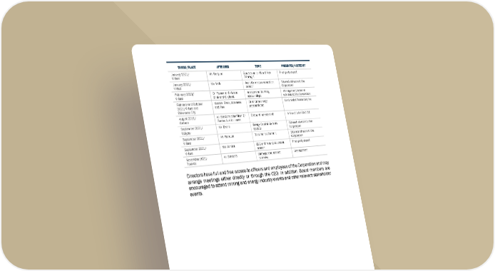 3 3 5 TIMING/PLACE ATTENDEES TOPIC PRESENTED/HOSTED BY January 2021/ Virtual Mr. Harquail Symposium on Board Risk Oversight Third-party expert January 2021/ Virtual Ms. Maki Audit Committee education session External advisors to the Corporation February 2021/ Virtual Dr. Farrow and Messrs. Brink and Oliphant Investor and banking relationships Management/external advisors to the Corporation February and October 2021/Virtual and Oklahoma City Messrs. Brink, Albanese and Pew Oklahoma energy presentations Continental Resources, Inc. August 2021/ Ontario All directors other than Dr. Farrow due to illness Detour Mine site visit Kirkland Lake Gold Ltd. September 2021/ Calgary Mr. Evans Energy Capital Markets Update External advisors to the Corporation September 2021/ Virtual Mr. Harquail Governance Summit External advisors to the Corporation September 2021/ Virtual Ms. Jensen ESG and mining education session Third-party expert November 2021/ Toronto All directors Strategic and market overview Management Directors have full and free access to officers and employees of the Corporation and may arrange meetings either directly or throug h the CEO. In addition, Board members are encouraged to attend mining and energy industry events and other relevant stakeholder events.