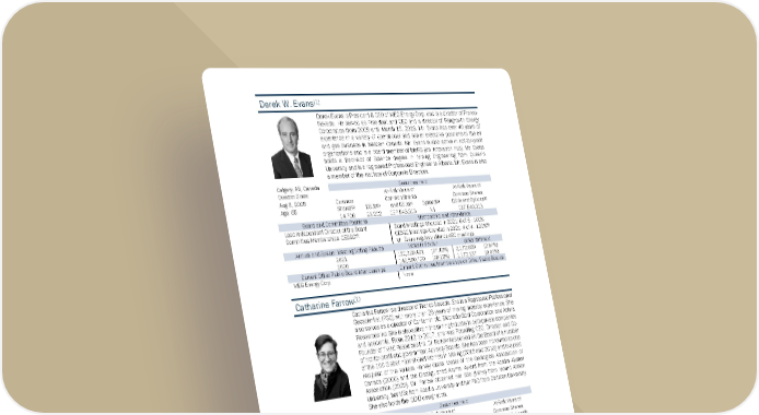 1 1 3 Derek W. Evans (1) Derek Evans is President & CEO of MEG Energy Corp. and is a director of Franco- Nevada. He served as President and CEO and a director of Pengrowth Energy Corporation from 2009 until March 15, 2018. Mr. Evans has over 40 years of experience in a variety of operational and senior executive positions in the oil and gas business in Western Canada. Mr. Evans is also active in not-for-profit organizations and is a board member of MaRS (an innovation hub). Mr. Evans holds a Bachelor of Science degree in Mining Engineering from Queen’s University and is a registered Professional Engineer in Alberta. Mr. Evans is also a member of the Institute of Corporate Directors. Calgary, AB, Canada Securities Held Director Since: At-Risk Value of At-Risk Value of Aug 8, 2008 Common Common Shares Common Shares, Age: 65 Shares (2) DSUs (3) and DSUs (4) Options (5) DSUs and Options (6) 14,706 23,202 C$7,543,313 Nil C$7,543,313 Board and Committee Positions Membership and Attendance Lead Independent Director of the Board Board Meetings Attended in 2021: 6 of 6 - 100% Committee Memberships: CESGC (9) CESGC Meetings Attended in 2021: 4 of 4 - 100% (9) Mr. Evans regularly attends ARC meetings. Annual and Special Meeting Voting Results Votes in Favour Votes Withheld 2021 120,329,491 (97.43%) 3,172,699 (2.57%) 2020 142,580,720 (99.18%) 1,172,137 (0.82%) Current Other Public Board Memberships Current Committee Memberships on Other Public Boards MEG Energy Corp. None Catharine Farrow (1) Catharine Farrow is a director of Franco- Nevada. She is a Registered Professional Geoscientist (PGO) with more than 26 years of mining industry experience. She also serves as a director of Centamin plc, Eldorado Gold Corporation and Aclara Resources Inc. She is also active in the mining industry in both private companies and academia. From 2012 to 2017, she was Founding CEO, Director and Co- Founder of TMAC Resources Inc. Dr. Farrow has served on the Board of a number of not-for-profit and government Advisory Boards. She has been honoured as one of the 100 Global Inspirational Women in Mining (2015 and 2018) and is a past recipient of the William Harvey Gross Medal of the Geological Association of Canada (2000) and the Distinguished Alumni Award from the Acadia Alumni Association (2020). Dr. Farrow obtained her BSc (Hons) from Mount Allison University, her MSc from Acadia University and her PhD from Carleton University. She also holds the ICD.D designation. Sudbury, ON, Canada Securities Held Director Since: At-Risk Value of At-Risk Value of May 6, 2015 Common Common Shares Common Shares, Age: 57 Shares (2) DSUs (3) and DSUs (4) Options (5) DSUs and Options (6) 301 14,141 C$2,873,814 20,000 C$5,680,214 Board and Committee Positions Membership and Attendance Independent Member of the Board Board Meetings Attended in 2021: 6 of 6 - 100% Committee Memberships: CESGC CESGC Meetings Attended in 2021: 6 of 6 - 100% Dr. Farrow regularly attends ARC meetings. Annual and Special Meeting Voting Results Votes in Favour Votes Withheld 2021 122,290,731 (99.02%) 1,211,459 (0.98%) 2020 142,525,541 (99.15%) 1,227,316 (0.85%) Current Other Public Board Memberships Current Committee Memberships on Other Public Boards Centamin plc Eldorado Gold Corporation Aclara Resources Inc. Audit & Risk | Sustainability (Chair) | Technical Compensation | Sustainability | Technical (Chair) Audit | Sustainability | Technical