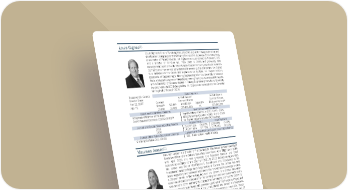 1 1 4 Louis Gignac (1) Louis Gignac is Chair of G Mining Ventures Corp. (a public mining exploration and development company) and of G Mining Services Inc. (a private consultancy) and is a director of Franco-Nevada. Mr. Gignac previously served as President, CEO and a director of Cambior Inc., from 1986 to 2006 and previously held management positions with Falconbridge Copper Company and Exxon Minerals Company and has served as a director of several public companies. Mr. Gignac is a member of the Ordre des ingénieurs du Québec. Mr. Gignac holds a Doctorate of Engineering in Mining Engineering from the University of Missouri Rolla, a Master’s degree in Mineral Engineering from the University of Minnesota, and a Bachelor of Science degree in Mining Engineering from Laval University. He also holds the ICD.D designation. Mr. Gignac was inducted into the Canadian Mining Hall of Fame in 2016. Brossard, QC, Canada Securities Held Director Since: At-Risk Value of At-Risk Value of Nov 12, 2007 Common Common Shares Common Shares, Age: 71 Shares (2) DSUs (3) and DSUs (4) Options (5) DSUs and Options (6) 10,000 18,452 C$5,661,663 Nil C$5,661,663 Board and Committee Positions Membership and Attendance Independent Member of the Board Board Meetings Attended in 2021: 6 of 6 - 100% Committee Memberships: CESGC (Chair) (10) CESGC Meetings Attended in 2021: 6 of 6 - 100% Mr. Gignac regularly attends ARC meetings. Annual and Special Meeting Voting Results Votes in Favour Votes Withheld 2021 119,687,158 (96.91%) 3,815,032 (3.09%) 2020 140,577,674 (97.79%) 3,175,183 (2.21%) Current Other Public Board Memberships Current Committee Memberships on Other Public Boards G Mining Ventures Corp. (Chair) ESG | Technical and Health & Safety Maureen Jensen (1) Maureen Jensen is a director of Franco-Nevada. She served as Chair and Chief Executive Officer of the Ontario Securities Commission (the “O O S C ”) from 2016 until April 2020 and was previously the Executive Director and Chief Administrative Officer of the OSC from 2011 to 2016. Before joining the OSC, Ms. Jensen was Senior Vice-President, Surveillance and Compliance at the Investment Industry Regulatory Organization of Canada. Ms. Jensen has held senior regulatory and business positions at the Toronto Stock Exchange and had a 20-year career in the mining industry. Ms. Jensen is a director and chair- nominee of Canada’s Ombudsman for Banking Services and Investments and is also active in other not-for-profit orga nizations including the Toronto Centre for Global Leadership in Financial Supervision, as Chair of The Prosperity Project and as a Public Governor of FINRA in the United States. Ms. Jensen is a Registered Professional Geoscientist (PGO), holds the ICD.D designation, has a BSc., Doctor of Laws (Honoris Causa) and is a member of the Investment Industry Hall of Fame. Thornbury, ON, Canada Securities Held Director Since: At-Risk Value of At-Risk Value of May 6, 2020 Common Common Shares Common Shares, Age: 65 Shares (2) DSUs (3) and DSUs (4) Options (5) DSUs and Options (6) Nil 2,657 C$528,716 Nil C$528,716 Board and Committee Positions Membership and Attendance Independent Member of the Board Board Meetings Attended 2021: 6 of 6 - 100% Committee Memberships: CESGC (11) CESGC Meetings Attended 2021: 4 of 4 - 100% (11) Ms. Jensen regularly attends ARC meetings. Annual and Special Meeting Voting Results Votes in Favour Votes Withheld 2021 122,278,407 (99.01%) 1,223,783 (0.99%) 2020 143,676,911 (99.95%) 75,946 (0.05%) Current Other Public Board Memberships Current Committee Memberships on Other Public Boards None None