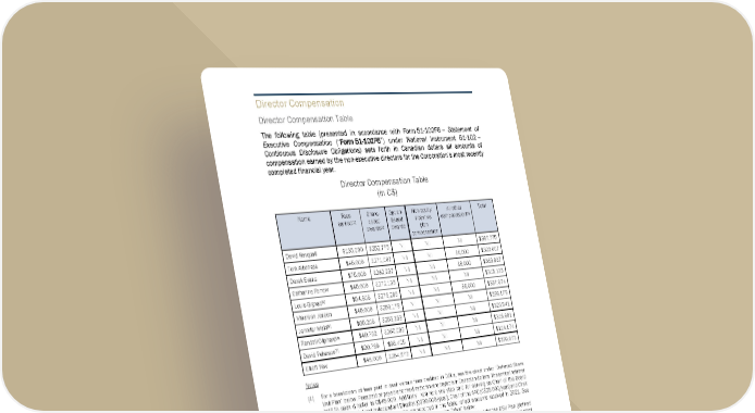 1 1 8 Director Compensation Director Compensation Table The following table (presented in accordance with Form 51-102F6 – Statement of Executive Compensation (“ F F o r m 5 1 - 1 0 2 F 6 ”) under National Instrument 51-102 – Continuous Disclosure Obligations ) sets forth in Canadian dollars all amounts of compensation earned by the non-executive di rectors for the Corporat ion’s most recently completed financial year. Director Compensation Table (in C$) Name Fees Share- Option- Non-equity All other Total earned (1) based based incentive compensation (3) awards (2) awards plan compensation David Harquail $135,000 $252,775 Nil Nil Nil $387,775 Tom Albanese $45,000 $271,007 Nil Nil $6,000 $322,007 Derek Evans $75,000 $282,937 Nil Nil $6,000 $363,937 Catharine Farrow $45,000 $270,135 Nil Nil Nil $315,135 Louis Gignac (4) $54,808 $276,266 Nil Nil $6,000 $337,074 Maureen Jensen $45,000 $253,178 Nil Nil Nil $298,178 Jennifer Maki (5) $65,208 $255,333 Nil Nil Nil $320,541 Randall Oliphant (6) $49,792 $267,099 Nil Nil Nil $316,891 David Peterson (7) $20,769 $93,405 Nil Nil Nil $114,174 Elliott Pew $45,000 $254,873 Nil Nil Nil $299,873 Notes (1) For a breakdown of fees paid in cash versus fees credited in DSUs, see the chart under “Deferred Share Unit Plan” below. Fees paid or payable to the directors were payable in Canadian dollars. The annual retainer paid to each director is C$45,000. Additional retainers are also paid for serving as Chair of the Board (C$90,000/year), Lead Independent Director (C$30,000/year), Chair of the ARC (C$25,000/year) and Chair of the CESGC (C$15,000/year). The figures reported in the table reflect amounts received in 2021. See Notes 4 to 7 below and “Discussion of Director Compensation Table” below. (2) Represents the grant date fair value of the: (1) dividend equivalents credited under the DSU Plan (defined below) and (2) 1,395 DSUs credited to each director other than Mr. Peterson who received a pro-rated grant of 478 DSUs. See “Discussion of Director Compensation Table” below. (3) Includes travel fees for out-of-town directors and for directors travelling to out-of-town meetings, as applicable, of C$1,500 per day to a maximum of two days per meeting. Reimbursement to each of the directors for other expenses and fees was made during the year. These reimbursements were not considered perquisites, as they were integrally and directly related to the performance of each director’s duties. (4) Mr. Gignac was appointed as Chair of the CESGC as of May 5, 2021. The figures reported in the table include amounts received by Mr. Gignac as Chair of the CESGC from the date of his appointment. (5) Ms. Maki was appointed as Chair of the ARC as of March 11, 2021. The figures reported in the table include amounts received by Ms. Maki as Chair of the ARC from the date of her appointment. (6) Mr. Oliphant ceased serving as Chair of the ARC as of March 11, 2021. The figures reported in the table include amounts received by Mr. Oliphant as Chair of the ARC up to his last day of service as Chair of the ARC.