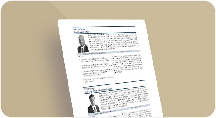 6 6 7 Sandip Rana Chief Financial Officer Sandip Rana, Chief Financial Officer, joined Franco-Nevada in April 2010. He previously served in treasurer and controller roles at old Franco-Nevada until 2002 and then acted as an international controller for Newmont. From 2003 to April 2010, Mr. Rana held financial roles at Four Seasons Hotels Limited where he last served as Vice-President Corporate Finance. Mr. Rana holds a Bachelor of Business Administration degree from the Schulich School of Business and is a Chartered Professional Accountant, CA. In February 2019, Mr. Rana was recognized as a Top Gun CFO by Brendan Wood International. Individual performance considerations CESGC conclusions Mr. Rana: Maintained a strong balance sheet with the Corporation having no debt by the end of 2021 Enhanced the asset management function and successfully resolved numerous outstanding issues Oversaw a comprehensive review of cybersecurity systems and progressed implementation of cybersecurity improvements Expanded investor relations outreach to a broader set of investors Mr. Rana met or exceeded all objectives set for him in 2021. In light of Mr. Rana’s individual outperformance and the results of the Corporate Goals performance, Mr. Rana was awarded an above-target (but below maximum) cash bonus and other incentive compensation at targeted levels, all as detailed in the Summary Compensation Table. For 2022, Mr. Rana received an inflationary adjustment to his base salary to C$639,600. Lloyd Hong Chief Legal Officer & Corporate Secretary Lloyd Hong, Chief Legal Officer & Corporate Secretary, joined Franco-Nevada in December 2012. He previously was the Senior Vice - President, Legal Counsel and Assistant Secretary of Uranium One Inc. Prior to that, he was a partner with the Canadian law firm of Davis LLP (now DLA Piper (Canada) LLP) with a practice focused on corporate finance and mergers and acquisitions. Mr. Hong holds a Bachelor of Commerce degree from the University of Alberta and a Bachelor of Laws degree from Queen’s University. Mr. Hong is a member of The Law Society of Ontario and The Law Society of British Columbia (non-practising). Individual performance considerations CESGC conclusions Mr. Hong: Oversaw the Corporation’s ESG efforts including first-time disclosure aligned with TCFD and SASB Worked closely with the business development team on successful deal negotiation and execution of new investments in excess of US$700 million Led the Corporation’s diversity leadership council which implemented several initiatives including unconscious bias training organization-wide Mr. Hong met or exceeded all objectives set for him in 2021. In light of Mr. Hong’s individual outperformance and the results of the Corporate Goals performance, Mr. Hong was awarded an above-target (but below maximum) cash bonus and other incentive compensation at targeted levels, all as detailed in the Summary Compensation Table. For 2022, Mr. Hong received an inflationary adjustment to his base salary to C$582,400.