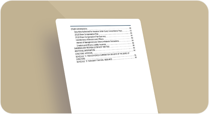 OTHER INFORMATION ....................................................................................................... 83 Securities Authorized for Issuance Under Equity Compensation Plans ................... 83 2018 Share Compensation Plan ................................................................................ 83 2018 Share Compensation Plan Summary ............................................................... 84 Indebtedness of Directors and Officers ..................................................................... 89 Interest of Management and Others in Material Transactions ................................. 89 Directors and Officers Liability Insurance .................................................................. 89 SHAREHOLDER PROPOSALS FOR NEXT MEETING .......................................................... 89 ADDITIONAL INFORMATION .............................................................................................. 89 DIRECTORS’ APPROVAL .................................................................................................... 90 SCHEDULE “A” FRANCO-NEVADA CORPORATION MANDATE OF THE BOARD OF DIRECTORS .................................................................................................................... ... 91 SCHEDULE “B” NON-GAAP FINANCIAL MEASURES.......................................................... 95