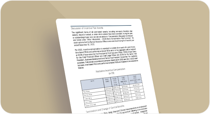 7 7 9 Discussion of Incentive Plan Awards The significant terms of all plan-based awards, including non-equity incentive plan awards, issued or vested, or under which opti ons have been exercised, during the year, or outstanding at year end, are set out ab ove in “Compensation Discussion & Analysis” and below under “Other Information – 2018 Share Compensation Plan Summary”. No stock options held by Named Executive Officers were exercised during the financial year ended December 31, 2021. For 2022, incentive compensation is expected to consist of an award of a cash bonus, time-based RSUs and performance-based RSUs which in the aggregate will be targeted at 400% of base salary for the President & Ch ief Executive Officer, 250% of base salary for the Chief Financial Officer and Chief Legal Officer and 200% for the Senior Vice President, Business Development and Senior Vi ce President, Diversified. For illustrative purposes, if all pre-set corporate and personal objectives for 2022 are met, in 2022 cash bonuses, time-based RSUs and performance-ba sed RSUs are targeted to be awarded as follows: Illustrative Incentive Compensation (in C$) Name Base Target Target Target Salary 2022 2022 2022 Cash Time-based Performance-based Bonus RSUs RSUs Paul Brink $900,000 $900,000 $900,000 $1,800,000 Sandip Rana $639,600 $319,800 $575,640 $703,560 Lloyd Hong $582,400 $291,200 $524,160 $640,640 Eaun Gray $410,000 $205,000 $205,000 $410,000 Jason O'Connell $400,000 $200,000 $200,000 $400,000 Termination and Change of Control Benefits Each of Messrs. Brink, Rana, Hong, Gray and O’Connell has entered into an employment agreement with the Corporation that provides for payments at, following, or in connection with, a termination (whether voluntary, involuntary or constructive), resignation, retirement, a change of control of the Corporat ion or a change in such executive officers’ responsibilities. Termination Benefits If any of Messrs. Brink, Rana, Hong, Gray an d O’Connell is terminated without just cause or resigns for “good reason” as defined in the applicable employment agreement (see below), such executive officer will be entitled to a lump-sum severance payment equal to the sum of 24 months’ base salary (determined as at the time of termination or resignation, as applicable). The individual will also be entitled to continue participating in the Corporation’s benefit plans for the same 24-month period. If the Corporation is unable to continue the individual’s participation in one or more of its benefit plans, the