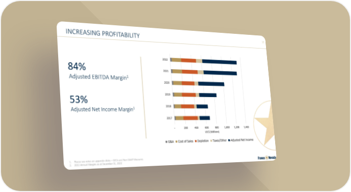 17 INCREASING PROFITABILITY Adjusted EBITDA Margin1 1. Please see notes on appendix slides – GEOs and Non-GAAP Measures 2. 2022 Annual Margins as at December 31, 2022 84% Adjusted Net Income Margin1 53% - 200 400 600 800 1,000 1,200 1,400 2017 2018 2019 2020 2021 2022 US $ (Millions) G&A Cost of Sales Depletion Taxes/Other Adjusted Net Income