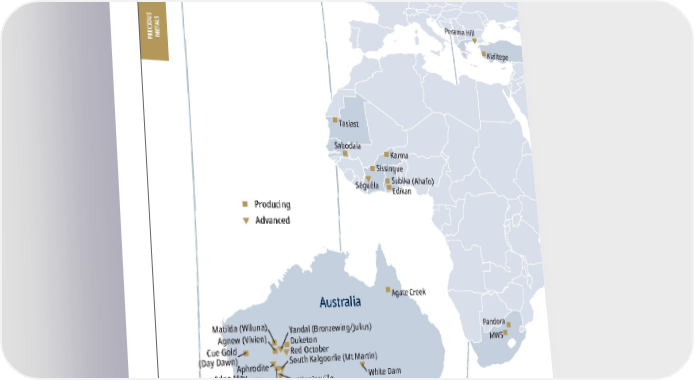 2022 ASSET HANDBOOK 84 FNV TSX NYSE Island Gold Red October Henty Duketon Yandal (Bronzewing/Julius) South Kalgoorlie (Mt Martin) Sterling Robinson Fire Creek Bald Mountain Marigold EaglePicher Pinson Midas Goldstrike Gold Quarry South Arturo Hollister Nevada Australia Subika (Ahafo) Tasiast Sabodala Edikan MWS Perama Hill Kiziltepe Karma Sissingue Cobre Panama Falcondo Cerro San Pedro Castle Mountain Rosemont Mesquite Courageous Lake Musselwhite Hemlo New Prosperity Hardrock Detour Lake Midale Weyburn Goldfields Monument Bay Edson Timmins West Sudbury Kirkland Lake Golden Highway Canadian Malartic Nevada Stibnite Gold Cariboo SCOOP Midland Orion Dublin Gulch (Eagle) Red Mountain Delaware STACK Franco-Nevada Head Office Franco-Nevada U.S. Office Franco-Nevada Barbados Office Kivivic 2 Marcellus Guadalupe-Palmarejo Brucejack CentroGold (Gurupi) Cerro Moro Taca Taca NuevaUnión (Relincho) San Jorge Antamina Salares Norte/ Rio Baker Valentine Lake Antapaccay Candelaria Calcatreu Stillwater Alpala Red Lake (Bateman) Milpillas Haynesville Agate Creek White Dam Condestable Séguéla Edna May Higginsville (Lake Cowan) Aphrodite Matilda (Wiluna) Agnew (Vivien) South Kalgoorlie (New Celebration) Cue Gold (Day Dawn) Carol Lake Vale N. System Vale S.E. System Sossego Pandora Producing Advanced PRECIOUS METALS REST OF WORLD