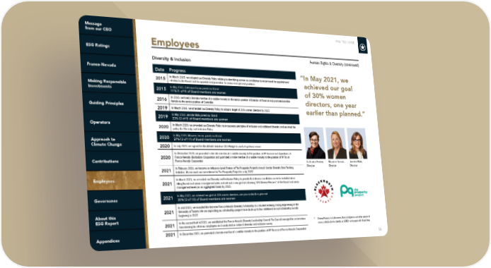FNV: TSX | NYSE 53 Diversity & Inclusion Human Rights & Diversity (continued) Date Progress 2015 In March 2015, we adopted our Diversity Policy relating to identifying women as candidates to recommend for appointment/ election to the Board and for appointment/promotion to senior management positions 2015 In May 2015, Catharine Farrow joined our Board 11% (1 of 9) of Board members are women 2016 In 2016, we hired a female member of a visible minority to the senior position of Director of Finance and promoted another female to the senior position of Controller 2019 In March 2019, we amended our Diversity Policy to adopt a target of 30% women directors by 2022 2019 In May 2019, Jennifer Maki joined our Board 22% (2 of 9) of Board members are women 2020 In March 2020, we amended our Diversity Policy to incorporate principles of inclusion and additional diversity and renamed the policy the Diversity and Inclusion Policy 2020 In May 2020, Maureen Jensen joined our Board 27% (3 of 11) of Board members are women 2020 In July 2020, we signed the BlackNorth Initiative CEO Pledge to combat systemic racism 2020 In December 2020, we promoted a female member of a visible minority to the position of VP Finance and Operations at Franco-Nevada (Barbados) Corporation and promoted a male member of a visible minority to the position of VP Tax at Franco-Nevada Corporation 2021 In February 2021, we became an Influence Level Partner of The Prosperity Project’s Annual Gender Diversity Data Tracking Initiative. We renewed our commitment to The Prosperity Project in early 2022 2021 In March 2021, we amended our Diversity and Inclusion Policy to provide that diverse candidates are to be included when filling Board and senior management roles and set out a new goal of achieving 40% Diverse Persons* at the Board and senior management level (on an aggregated basis) by 2025 2021 In May 2021, we achieved our goal of 30% women directors, one year earlier than planned 30% (3 of 10) of Board members are women 2021 In mid-2021, we awarded the first ever Franco-Nevada Diversity Scholarship to a student entering mining engineering at the University of Toronto. We are expanding our scholarship program to include up to four additional annual scholarship awards beginning in 2022 2021 In the second half of 2021, we established the Franco-Nevada Diversity Leadership Council. The Council arranged for unconscious bias training for all of our employees and conducted an internal diversity and inclusion survey 2021 In December 2021, we promoted a female member of a visible minority to the position of VP Finance at Franco-Nevada Corporation * Diverse Persons include women, Black, Indigenous and other people of colour, individuals who identify as LGBTQ+ and people with disabilities Catharine Farrow, Director Jennifer Maki, Director Maureen Jensen, Director “In May 2021, we achieved our goal of 30% women directors, one year earlier than planned.” Employees