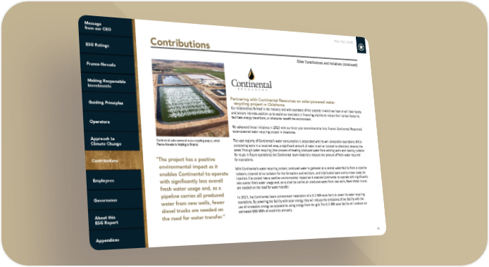FNV: TSX | NYSE 46 Contributions Other Contributions and Initiatives (continued) Partnering with Continental Resources on solar-powered water recycling project in Oklahoma Our relationships formed in the industry and with operators of the projects in which we have or will have royalty and stream interests position us to assist our operators in financing projects to reduce their carbon footprint, facilitate energy transitions, or otherwise benefit the environment. We advanced these initiatives in 2021 with our three year commitment to help finance Continental Resources’ solar-powered water recycling project in Oklahoma. The vast majority of Continental’s water consumption is associated with its well completion operations. While completing wells in a localized area, a significant amount of water must be injected to effectively develop the asset. Through water recycling (the process of treating produced water from existing wells and making suitable for reuse in future operations) the Continental team materially reduces the amount of fresh water required for operations. With Continental’s water recycling project, produced water is gathered at a central water facility from a pipeline network, cleaned to be suitable for the formation and wellbore, and distributed back out to crews ready for injection. The project has a positive environmental impact as it enables Continental to operate with significantly less overall fresh water usage and, as a pipeline carries all produced water from new wells, fewer diesel trucks are needed on the road for water transfer. In 2021, the Continental team commenced installation of a 0.3 MW solar farm to power its water recycling operations. By powering the facility with solar energy, they will reduce the emissions of the facility with the use of renewable energy as opposed to using energy from the grid. The 0.3 MW solar facility will produce an estimated 686 MWh of electricity annually. Continental solar-powered water recycling project, which Franco-Nevada is helping to finance “The project has a positive environmental impact as it enables Continental to operate with significantly less overall fresh water usage and, as a pipeline carries all produced water from new wells, fewer diesel trucks are needed on the road for water transfer.”