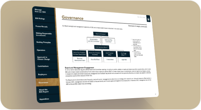 FNV: TSX | NYSE 62 Governance & Integrity (continued) Our Board oversight and management leadership of ESG and climate-related issues is depicted in the chart below. Board and Management Engagement All of our senior executives regularly attend Board and Committee meetings, including to provide updates on royalty and stream acquisition opportunities, which include ESG and climate-related considerations. To the extent that a materially adverse ESG or climate-related issue or consideration arises during the due diligence process in respect of a royalty and stream opportunity, management and the Board may decide not to proceed with the opportunity. Recently, our company has passed on otherwise prospective opportunities because of ESG risks. The Board and its Committees also frequently meet with senior management to determine our strategy with respect to our risks and exposures. Most recently, in February 2021, management met with the CESGC to discuss diversity and inclusion goals and targets for the company and, in November 2021, management met with the ARC to discuss ESG-related risks and strategy. * Board and Committees have oversight over ESG and climate-related risks and opportunities ** Chief Executive Officer has responsibility for leadership on ESG and climate-related matters *** Chief Legal Officer has executive responsibility over ESG and climate-related matters Business Development Team Senior Vice President Business Development Diversified Team Senior Vice President Diversified Compensation and ESG Committee* Finance Team Chief Financial Officer Audit and Risk Committee* Chief Executive Officer** Board of Directors* Legal Team Chief Legal Officer*** Governance