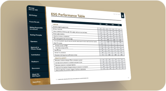 FNV: TSX | NYSE 73 Unit 2021 2020 2019 LABOUR Collective bargaining agreements # Nil Nil Nil Strikes or lock-outs # Nil Nil Nil Labour violations or fines (e.g. age limits, wages, maximum hours and days) # Nil Nil Nil Human rights violations # Nil Nil Nil Reports of violence or harassment # Nil Nil Nil FTEs making greater than minimum wage % 100 100 100 FTEs receiving vacation pay, sick pay and parental leave pay and receive health and other benefits % 100 100 100 Total FTE turnover # 1 4 1 Voluntary turnover of FTEs 5 # 1 4 1 Involuntary turnover of FTEs # Nil Nil Nil New FTE hires # 2 1 5 Internal FTE promotions # 5 4 Nil Employees receiving annual performance reviews % 100 100 100 HEALTH & SAFETY Workplace incidents relating to FTEs or contractors reported # Nil Nil Nil Lost days due to personnel or contractor workplace injuries # Nil Nil Nil Workplace personnel or contractor fatalities # Nil Nil Nil Instances of occupational diseases among our personnel or contractors # Nil Nil Nil Health & safety fines, penalties, litigation, liabilities or settlements # Nil Nil Nil 5 Includes transition of executives of the Company and its subsidiaries to non-executive directorship roles. ESG Performance Table