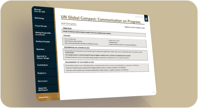 FNV: TSX | NYSE 117 UN Global Compact: Communication on Progress Anti-Corruption PRINCIPLES Principle 10: Businesses should work against corruption in all its forms, including extortion and bribery. POLICIES • Business Integrity Policy • Code of Business Conduct and Ethics • Policy Concerning Confidentiality, Fair Disclosure and Trading in Securities • Supplier Code of Conduct • Whistleblower Policy • Employee Complaint Procedures for Accounting and Auditing Matters DESCRIPTION OF ACTIONS IN 2021 • We ensured that all of our consultants and service providers agreed to comply with our Supplier Code of Conduct, which sets out our standards with respect to anti-corruption and ethical business practices • When making investments, we conducted thorough ESG-related due diligence, including any history of corruption of the applicable operator and operation • We closely monitored for any issues or controversies relating to corruption of our operators or at operations where we have a royalty or stream interest MEASUREMENT OF OUTCOMES IN 2021 • No whistleblower complaints under the Whistleblower Policy or the Employee Complaint Procedures for Accounting and Auditing Matters (see Appendix A of this ESG Report) • There were no facilitation payments, political donations, lobbying expenditures made by our company (see Appendix A of this ESG Report) • There were no noted or reported cases of corruption (including extortion or bribery) relating to our suppliers (see Appendix A of this ESG Report) Progress on the Ten Principles in 2021