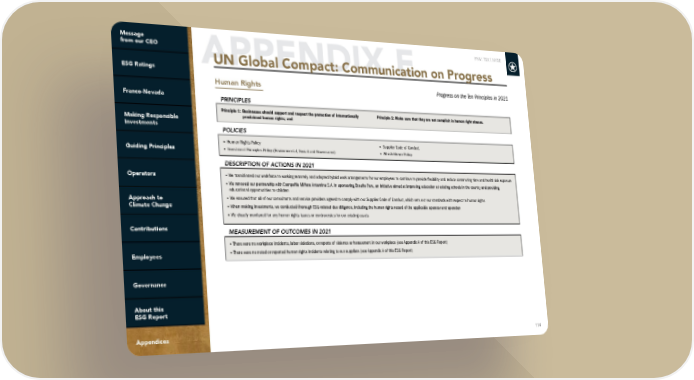 FNV: TSX | NYSE 114 APPENDIX E UN Global Compact: Communication on Progress PRINCIPLES Principle 1: Businesses should support and respect the protection of internationally proclaimed human rights; and Principle 2: Make sure that they are not complicit in human right abuses. POLICIES • Human Rights Policy • Investment Principles Policy (Environmental, Social and Governance) • Supplier Code of Conduct • Whistleblower Policy DESCRIPTION OF ACTIONS IN 2021 • We transitioned our workforce to working remotely and adopted hybrid work arrangements for our employees to continue to provide flexibility and reduce commuting time and health risk exposure • We renewed our partnership with Compañía Miñera Antamina S.A. in sponsoring Enseña Peru, an initiative aimed at improving education at existing schools in the country and providing educational opportunities to children • We ensured that all of our consultants and service providers agreed to comply with our Supplier Code of Conduct, which sets out our standards with respect to human rights • When making investments, we conducted thorough ESG-related due diligence, including the human rights record of the applicable operator and operation • We closely monitored for any human rights issues or controversies for our existing assets MEASUREMENT OF OUTCOMES IN 2021 • There were no workplace incidents, labor violations, or reports of violence or harassment in our workplace (see Appendix A of this ESG Report) • There were no noted or reported human rights incidents relating to our suppliers (see Appendix A of this ESG Report) Human Rights Progress on the Ten Principles in 2021